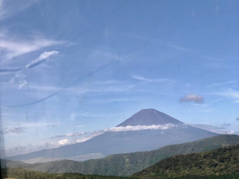 早雲山から大涌谷に登るところで右側に大きな富士山が見えてくる。こんなに大きな富士山が見えることがとても感動です。同じロープウェイに乗り合わせた人たちが一斉に声をあげ、スマホカメラを撮っていました。もちろん私も撮りました。
